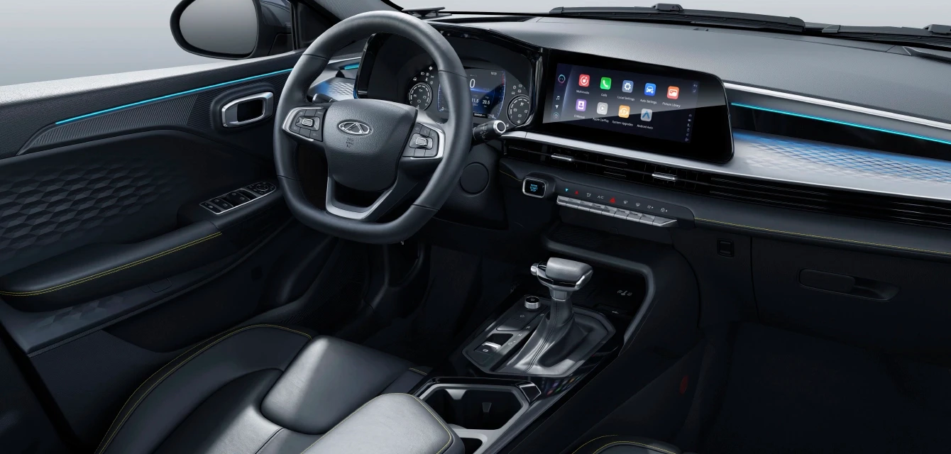 O Tiggo 2 oferece um controlo intuitivo através de uma interface digital refinada. O seu ecrã tátil de 10.25 polegadas integra multimédia, navegação e conectividade com smartphones, enquanto os controlos montados no volante permitem um acesso fácil às funções principais sem distrações. Com um design simples e altamente responsivo, o painel de instrumentos mantém as informações essenciais claramente visíveis, aumentando a segurança, o conforto e a confiança ao volante em todas as viagens.